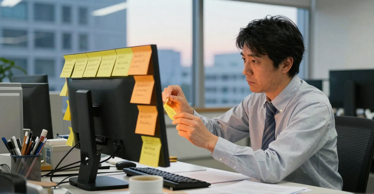 パソコンのモニター周りに貼られた黄色い紙片は、もう数えきれないほどになっている。「顧客データの可視化ツール」「営業日報の自動要約」「新人研修のオンライン化」——どれも会議中や通勤電車の中で思いついたアイデアだった。